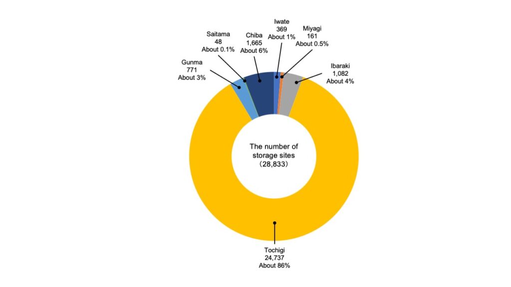 With regard to the number of storage sites, there are around 29,000 storage sites and you can find out that Tochigi Prefecture occupies around 86%.