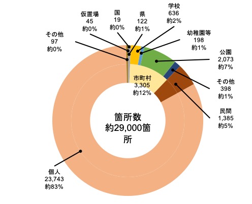 逆に、保管箇所数では、図4に示したように、約9割が個人、民間企業という、民有地において保管されていることが分かります。