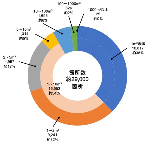保管箇所数は約29,000箇所ですが、そのうち、10m3以下の保管場所が9割以上を占めています。