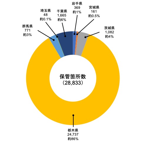 保管箇所数については、約29,000箇所ある保管場所うち、栃木県が約86%を占めていることが分かります。